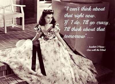 On days like this, I will sit down with a truly gruesome murder mystery to read about people who are worse off than me (usually dead) and I don't get any writing done. I give up and say, as Scarlett O'Hara did in Gone With the Wind after shooting dead a Union soldier in the foyer of her war-wrecked, once grand plantation home Tara, and wondering what to do with the body: "I can't think about that right now. If I do, I'll go crazy. I'll think about that tomorrow."