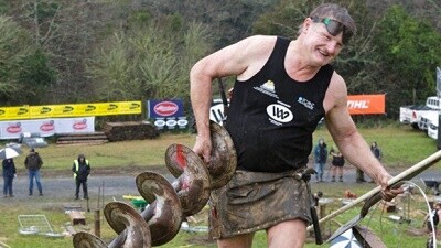 The man who called me last year was none other than Nick Liefting. That's him in the photo with some of his fencing gear. Listing his Fieldays records reads like the Academy Awards of fencing in New Zealand: longest ever competitor (40 years) year on year, 36 singles finals (28 years were first off the lines in both qualifying heats and finals), the longest margin of 1.5 hours after the second man off, the fastest ever heats time of one hour 8 minutes, the slimmest margin in time and points in a final (one fifth of a point) and finally, in his last year of competition in 2015 he was the first ever 60 year old in the final. He has won the Pliers twice.