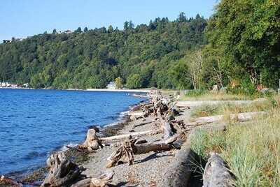 Another movie shows me swimming with my sister in Puget Sound at Seahurst, an admirable feat considering how cold the water is there, year round. But when you're 6 or 7 years of age, cold doesn't matter. The photo above is of Seahurst Park - gives you an idea of the terrain.
