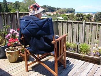 Mom came back from the rest home this past week, very happy to be home again, enjoying the sea and view and her flowers on the deck. All in all it went very well in there. She made a new friend - Jenna - and when it was time to leave, Mom said to me, 'It's hard to make friends and then have to leave them.' She and Jenna said good bye as best they could, with their walking frames nose to nose, maneuvering along so as not to knock each other over.