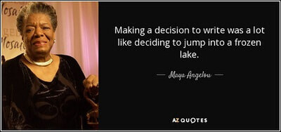 In some cases, it seems this is a profound revelation, there is no doubt, it's a feeling within, one of surety. Sometimes it's a shocking decision. As the wonderful Ms Maya Angelou says, her decision to write was '...like deciding to jump into a frozen lake.' However it happens, writing is the path, the destiny, no matter how ill-considered, difficult or daunting it may appear at the time.