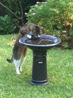 In spite of the convenience, Betsy likes drinking from the bird bath on the front lawn.