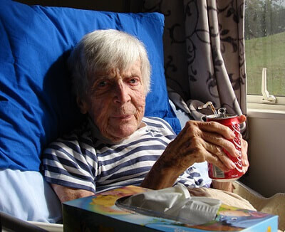 It made me think of my Mom in the weeks before she died. She spent most of her time in bed but did still enjoy being taken out for some sunshine and flower-time in her wheelchair. She couldn't really say much but made it very clear when she wanted her 'sweet treats' - a can of Coke with a straw was a particular favourite, or a small tub of vanilla ice cream that we'd bring in for her.