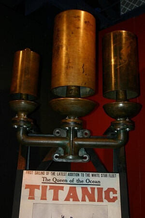 One of the most impressive was the recovery, conservation, and restoration of a set of the ship's massive whistles. The two forward funnels were each fitted with a set. The whistles were like organ pipes and steam operated, giving off a sound that was somewhat melodic and very loud. Apparently when at sea, the whistles were tested every day at noon and were used in port when tugboats were maneuvering the ship.