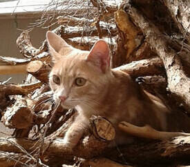 Out popped a little ginger head and it was my old mate Mr. Boy from next door. He and his sister Poppy have now discovered my cottage, trekking up all the outdoor stairs to visit and explore what they see as a new and fascinating place.