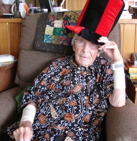Mom loved Christmas. This photo was taken one Christmas morning. My sister had given her this hat. In her later years, Mom delighted in just opening gifts, didn't really matter what was inside (as evident from the hat ...). It was the opening, the reveal, the 'oh goodness!' before that one was set aside and the next was placed on her lap, shedding its wrapping in short order. Soon her chair would be surrounded by piles of gaudy Christmas wrap and little gifts.